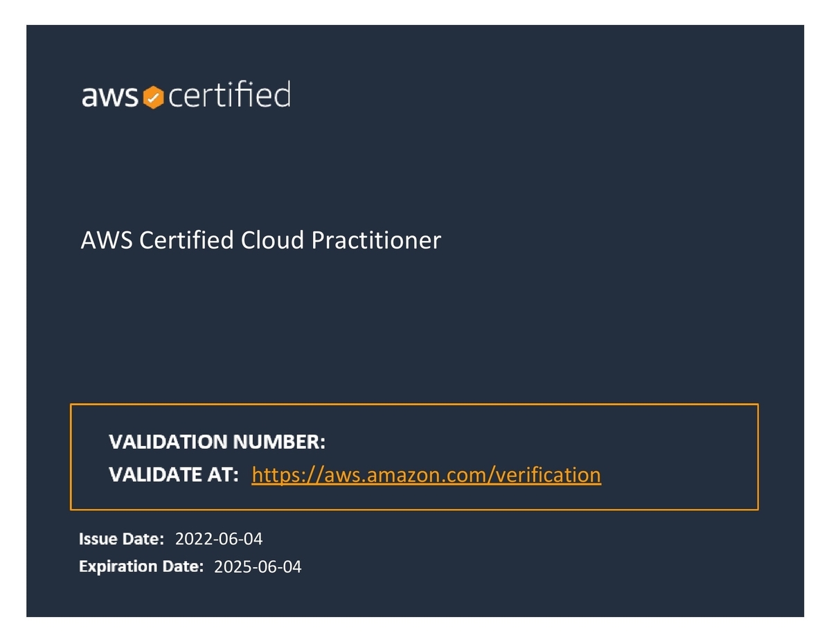 AWSの試験では難易度が1番低い試験ですが、思っているより難しい試験でした。業務でAWSを使用しておらず全く馴染みがないため、用語とか覚えるのが大変でした。